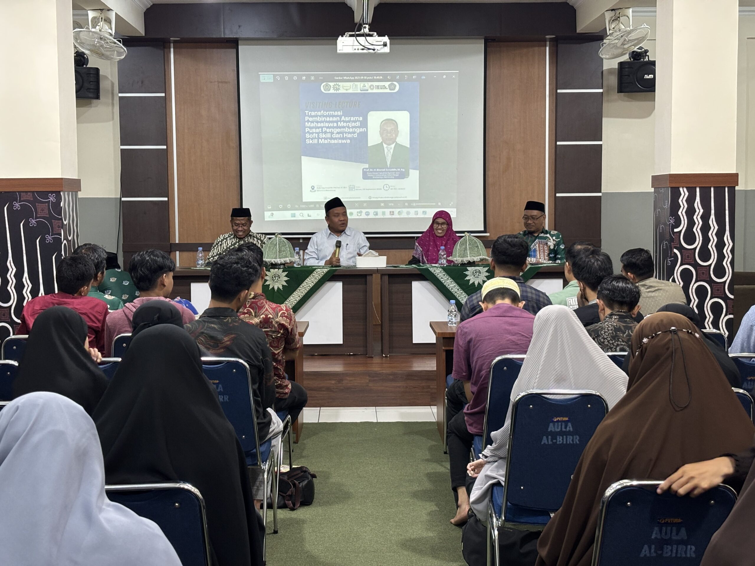 LENTERA.PRESS, Makassar – Fakultas Agama Islam (FAI) Universitas Muhammadiyah (Unismuh) Makassar bekerja sama dengan Ma’had Al-Birr menggelar kuliah tamu (visiting lecture) bertajuk “Transformasi Pembinaan Asrama Mahasiswa Menjadi Pusat Pengembangan Soft Skill dan Hard Skill Mahasiswa”. Acara ini berlangsung di Aula Syamsuddin Ma’had Al-Birr Unismuh Makassar, Selasa (9/9/2025).